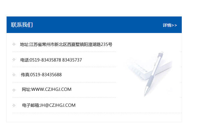 地址:常州市新北區(qū)友邦商務(wù)大廈1幢16、17層  電話:0519-85101652  傳真:0519-85112595  郵編:213022  網(wǎng)址:www.cz-jiayue_cn.yd95598.com  郵箱:xiajifengaa@163.com